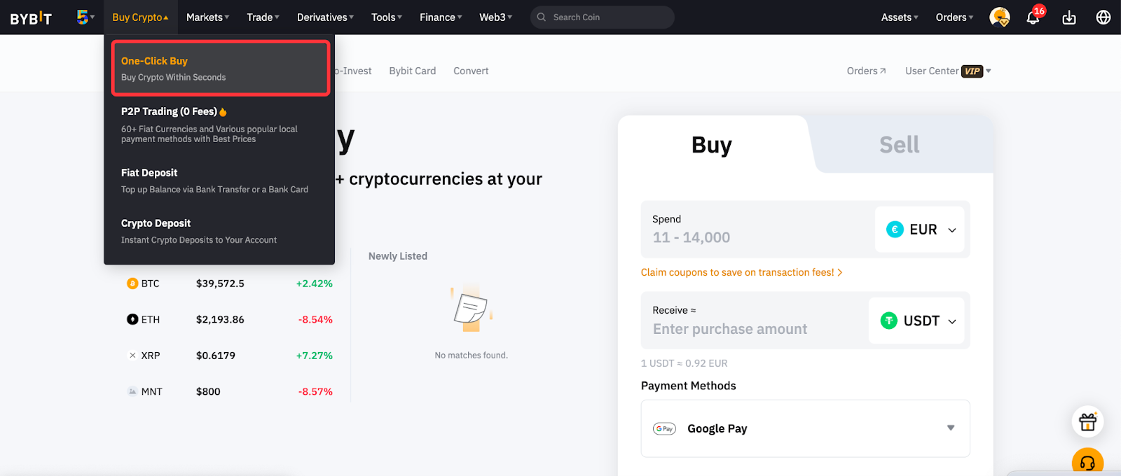 Step 1: Click on Buy Crypto → One-Click Buy on the top left corner of the navigation bar to enter the One-Click Buy page.