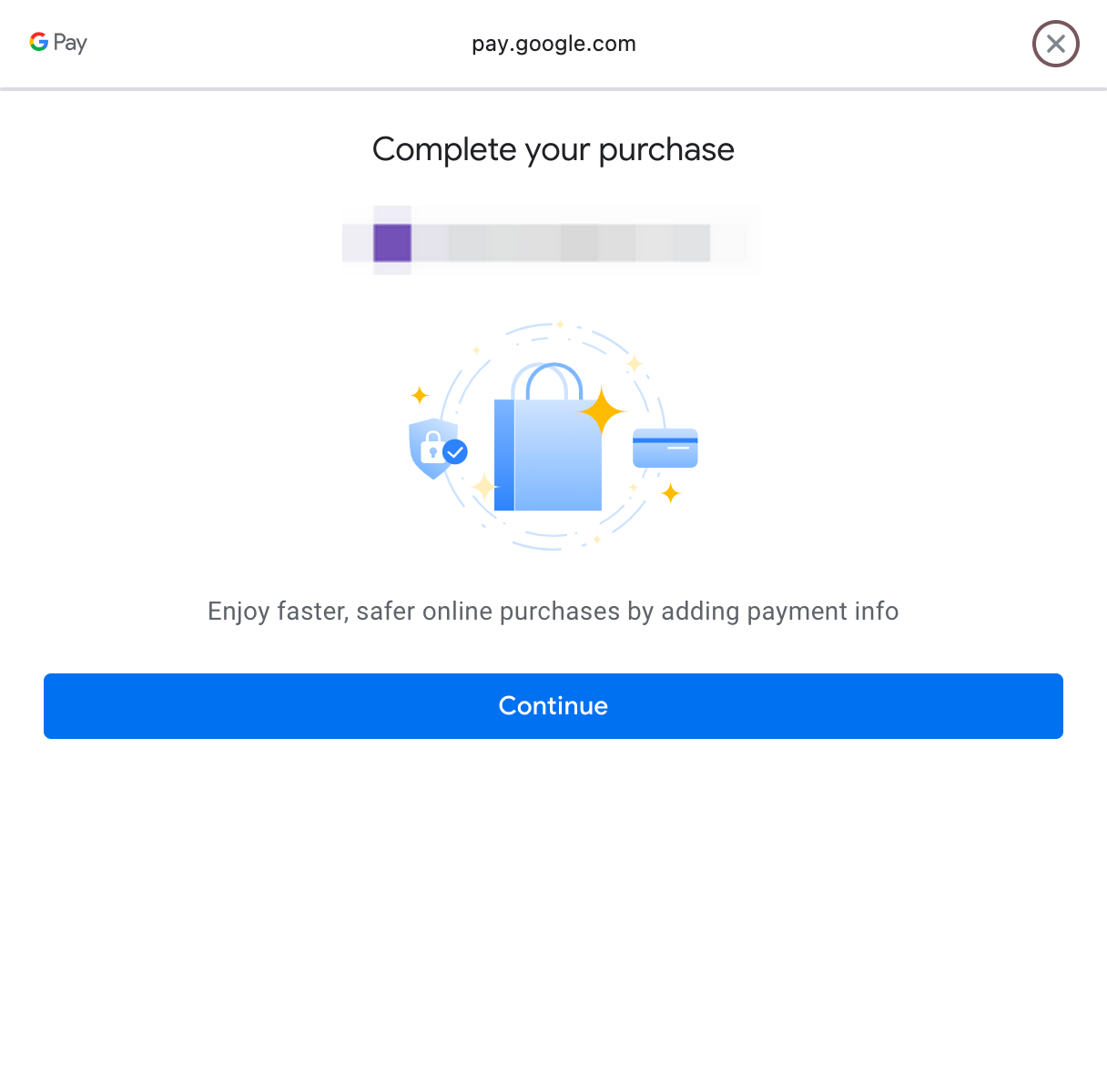 To link your Google Pay/Apple Pay account for the initial deposit, click on Continue on the pop up window.