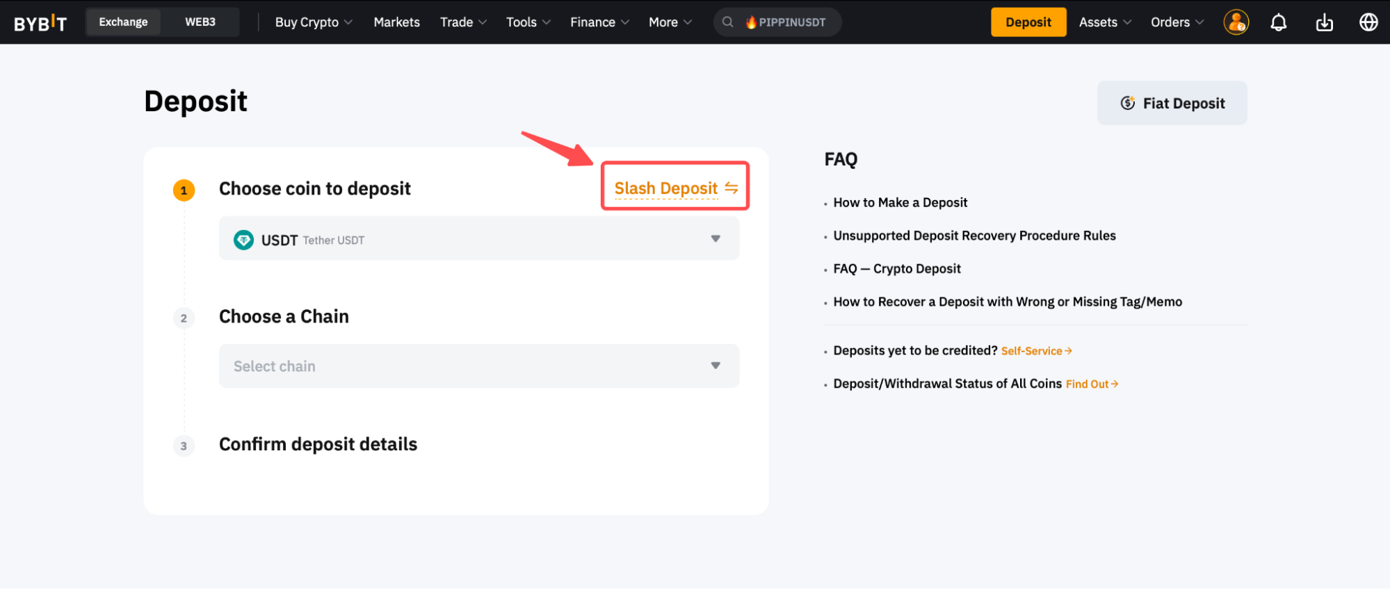 Ось покроковий посібник із внесення USDT за допомогою Slash: