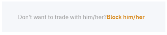Tuy nhiên, bạn có thể đánh giá trải nghiệm giao dịch của mình và đánh giá của bạn sẽ được phản ánh trong tỷ lệ phần trăm Xếp Hạng Tốt và danh tiếng giao dịch của đối tác. Đánh giá của bạn sẽ được hiển thị công khai và có thể ảnh hưởng đến quyết định của các nhà giao dịch khác. Bạn có thể tìm thấy hướng dẫn sử dụng tính năng đánh giá tại đây