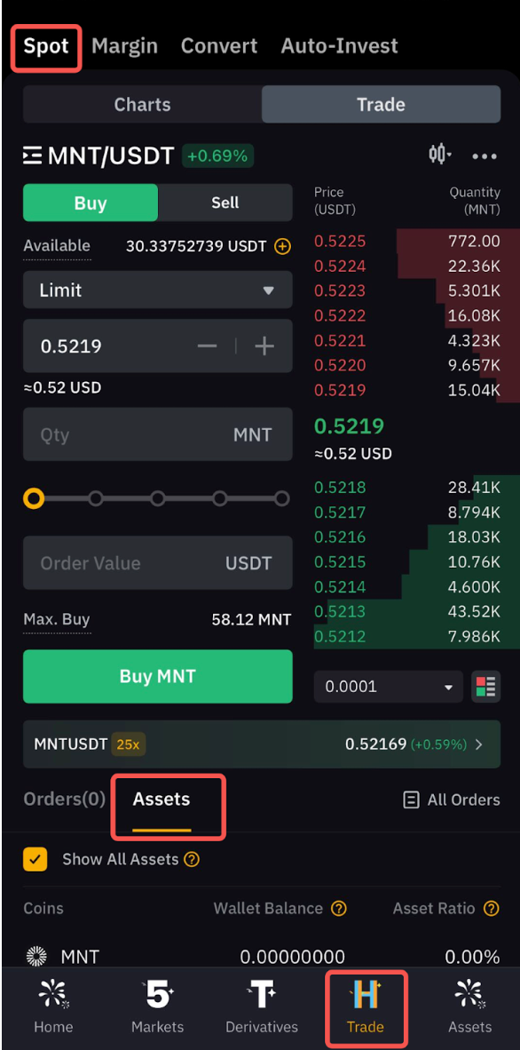 对于永续及交割合约仓位,请在衍生品交易页面点击持仓。您可以前往现货交易的资产列表查看您的现货资产,并从交易记录中查看您的资金收益。