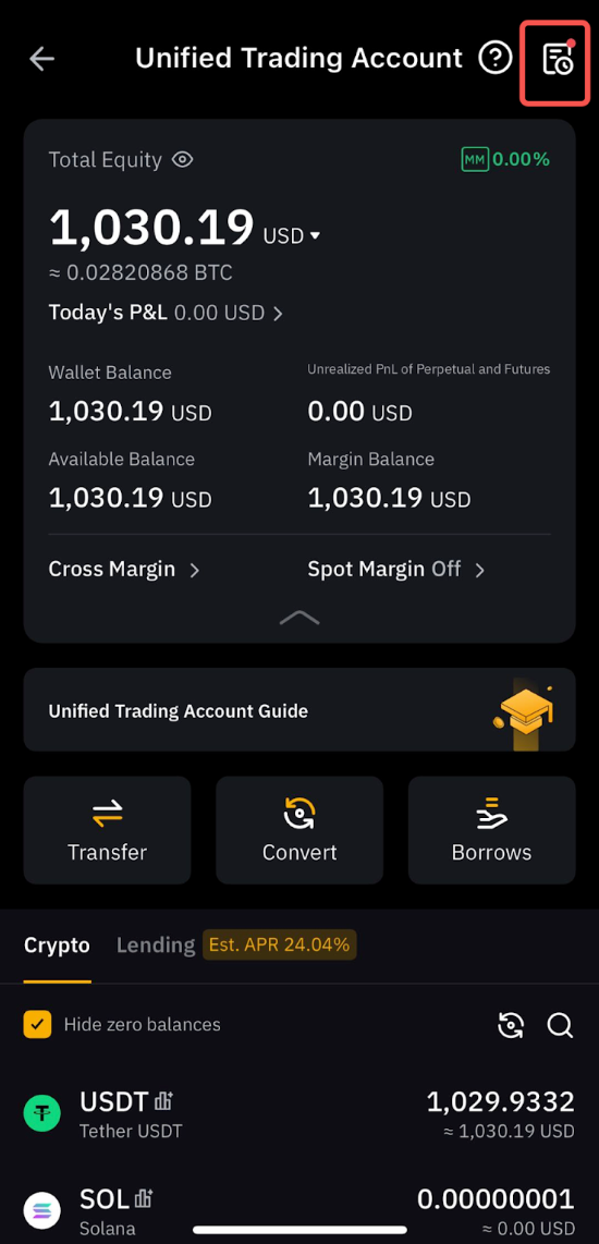 • 要查看资金费用/收益详情,您可以从 UTA 资产页面的交易记录中查看。