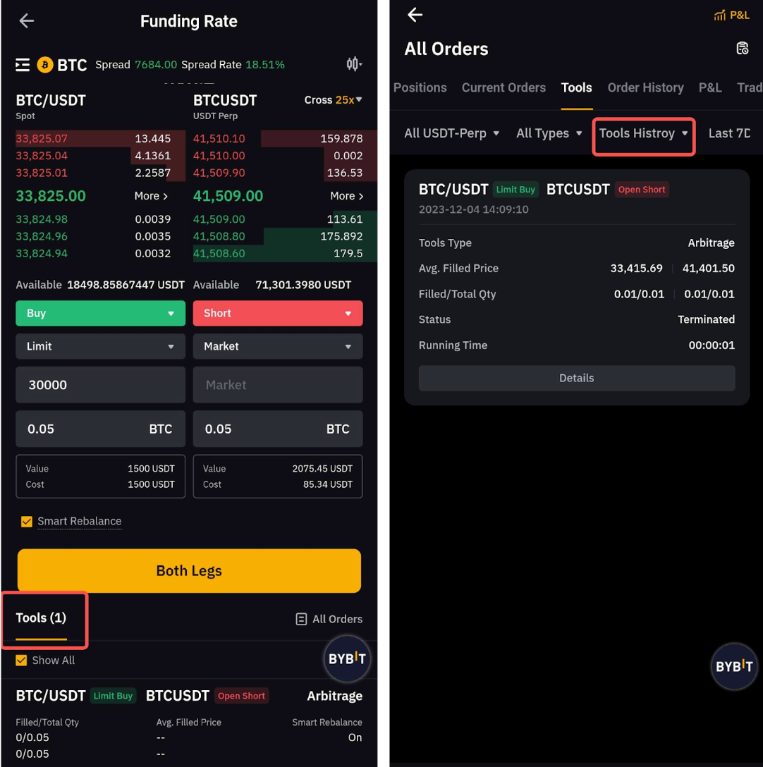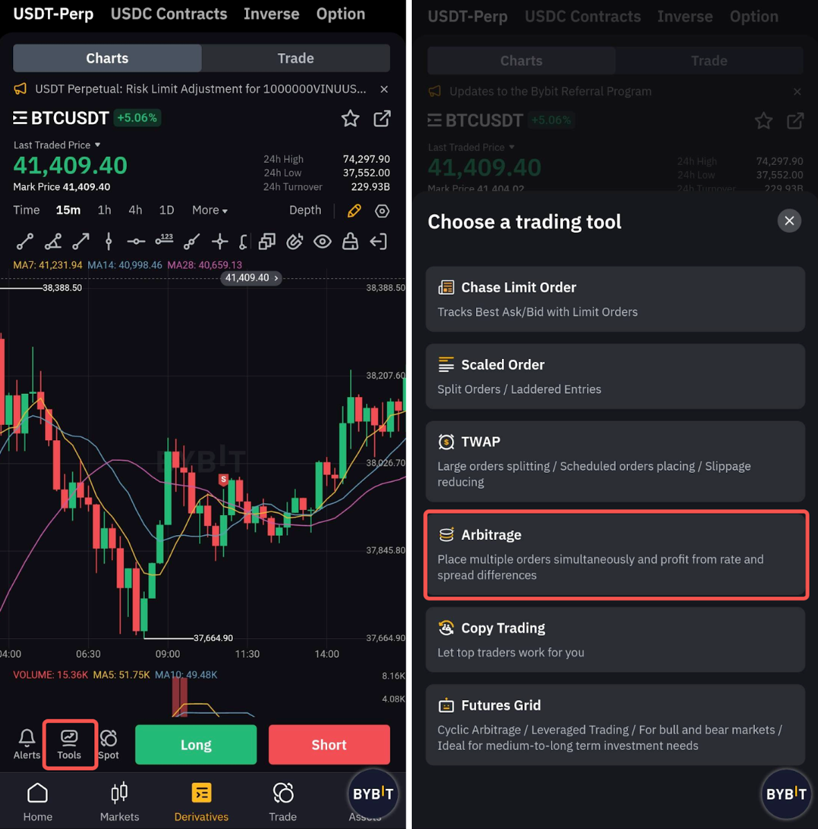目前,套利工具仅在 Bybit App 可用,且仅限于统一交易账户 (UTA) 全仓保证金模式。要升级到 UTA,请参阅这篇文章