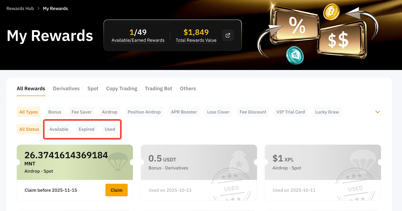 用户必须在特定到期日前领取奖励。领取的奖励有单独的到期日。