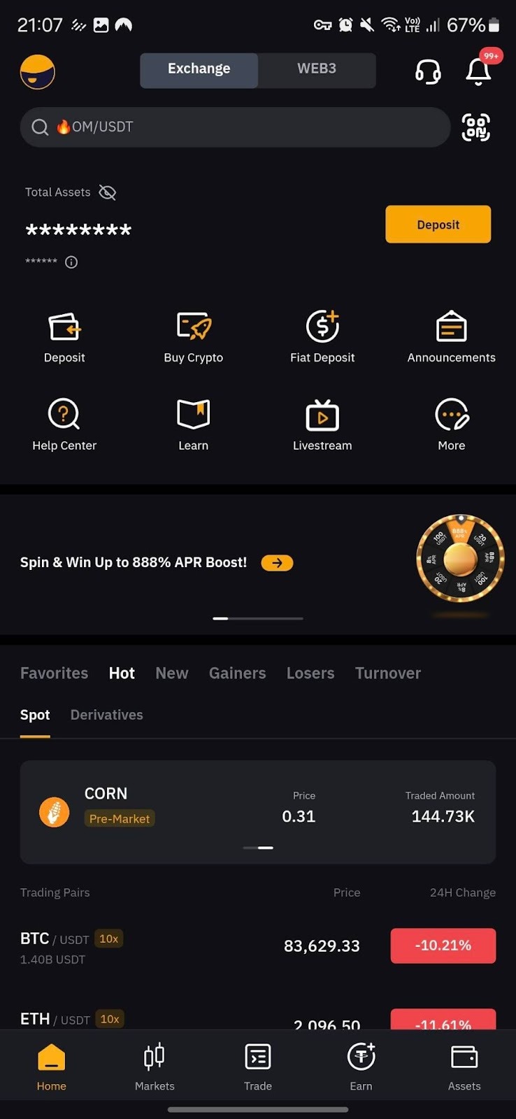 • 充值:如果您的账户目前未持有任何加密货币资产,您可以直接充值资金。