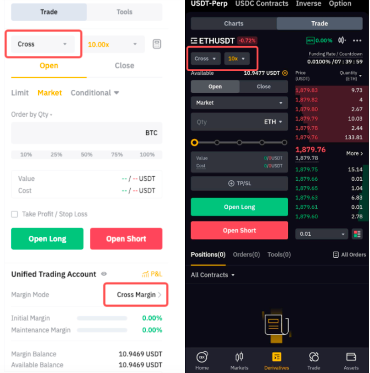 您可以通过任一交易页面或统一交易账户资产页面切换保证金模式。请注意,要切换至全仓保证金模式,双向持仓(多头仓位和空头仓位)的杠杆及风险限额必须保持一致。否则,您将无法成功切换至全仓保证金模式。欲了解详情,请参阅此处的保证金模式切换标准详解。
