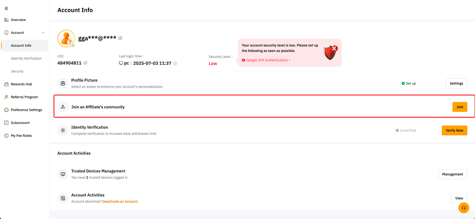 第 2 步: 点击加入代理社区。如果您没有看到此入口,则可能是由于未达到上述标准。