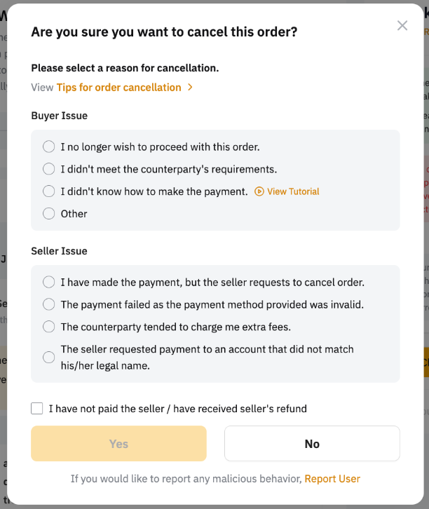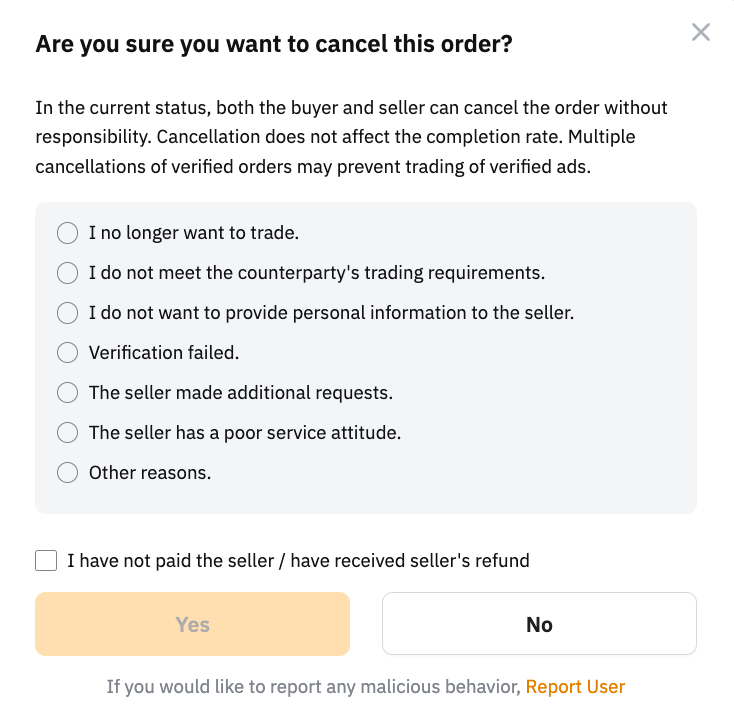 如何以买家身份取消 P2P 订单