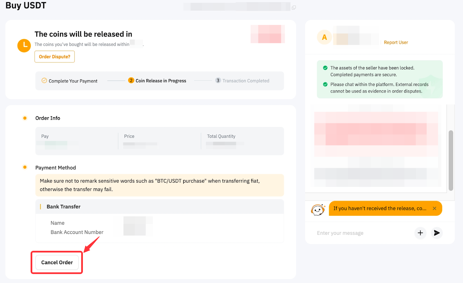 • 如果双方未能达成共识,请点击订单申诉提出申诉,寻求 P2P 专员的帮助。