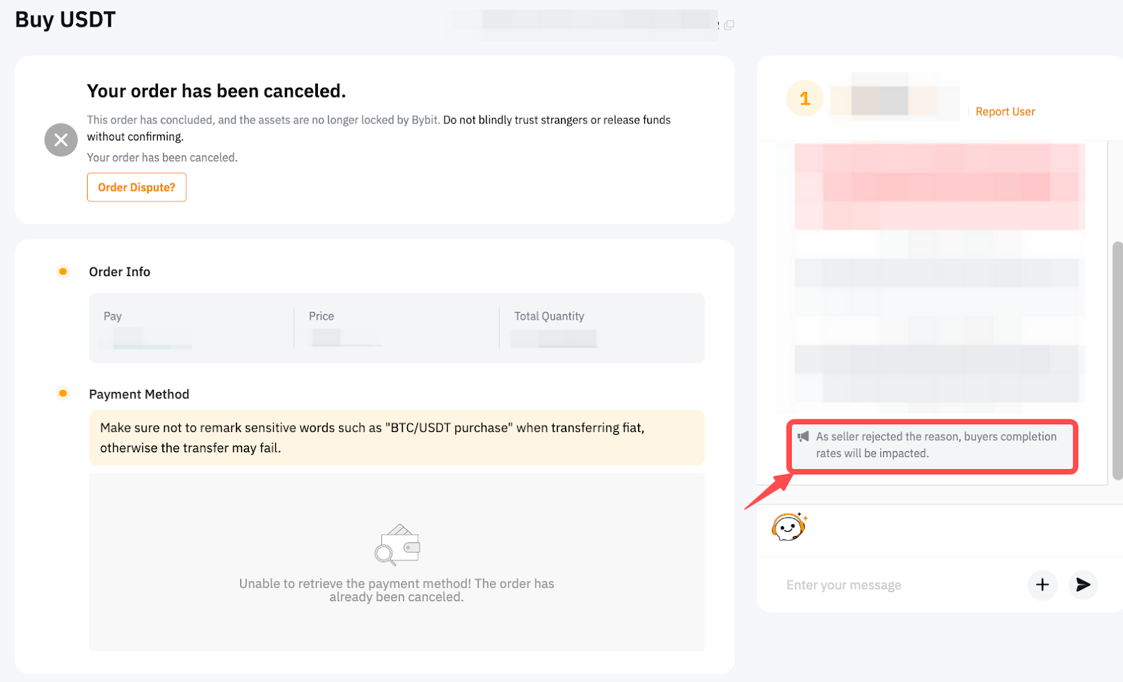 • 如果付款成功,请拒绝请求,并通过订单聊天框与卖家沟通。