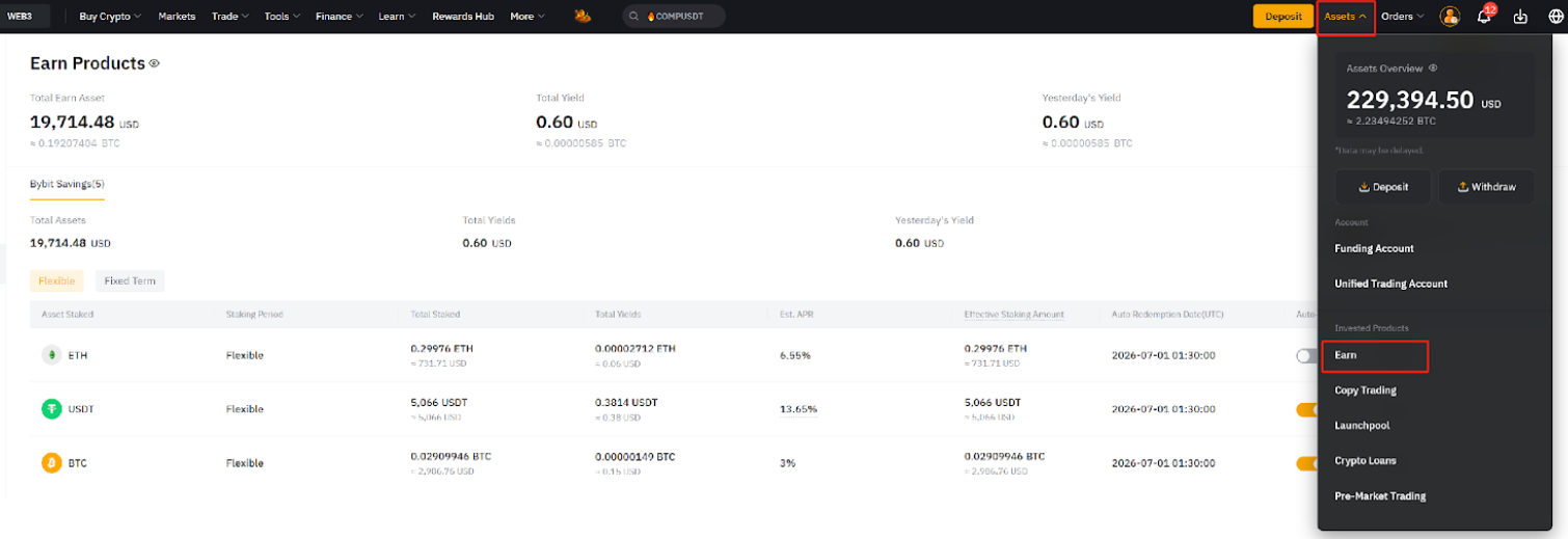 - 储蓄:收益来自 Bybit 平台的借贷活动。
