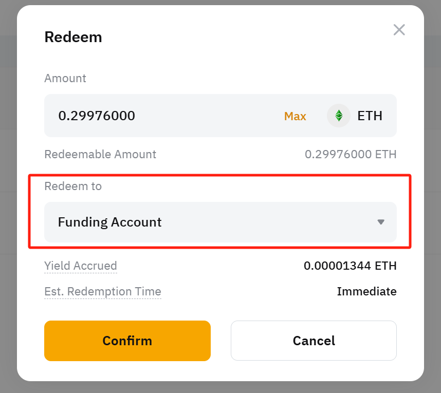 第 2 步:输入需要赎回的金额;或点击最大,赎回全部余额。