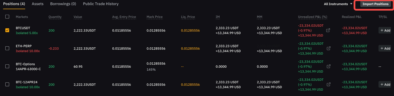 第 2 步:选择要平仓的仓位,然后点击底部右上角的导入仓位按钮。