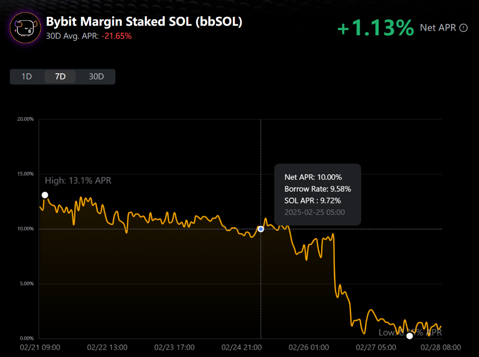 第 3 步:将鼠标悬停在年化收益率图表上,即可随时查看净年化收益率、借币利率以及 SOL 收益率