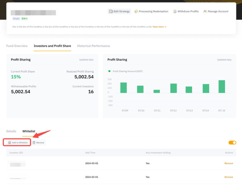 被移出白名单的投资者仅可执行赎回操作,无法追加投资当前策略或跟投任何新策略。