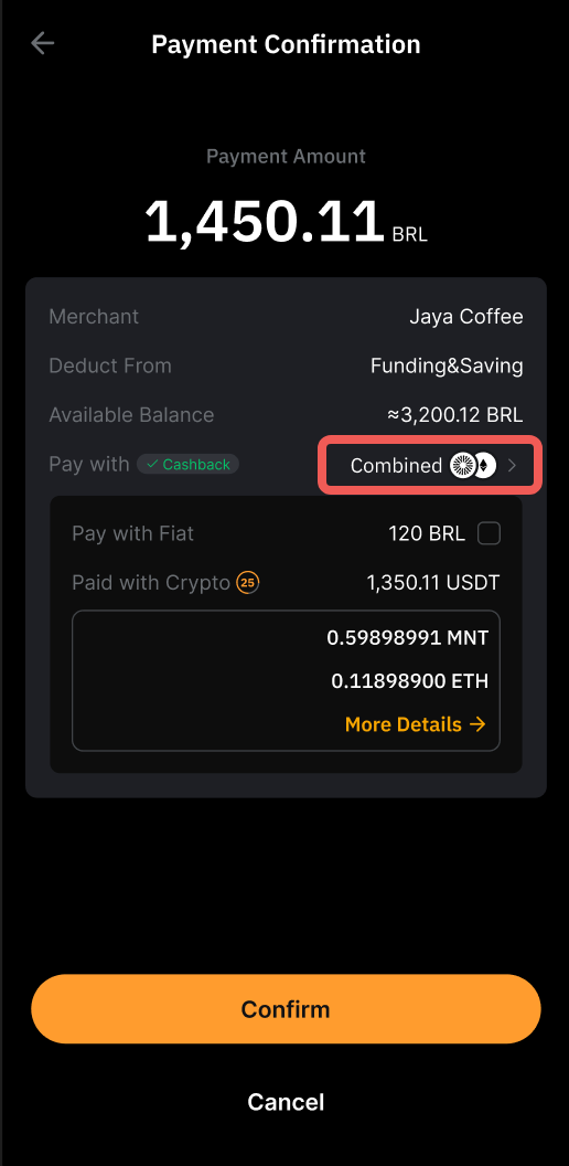 - If the Combined button is enabled and your Funding account has insufficient USDT, funds from your Earn account will be used based on your set payment priority.