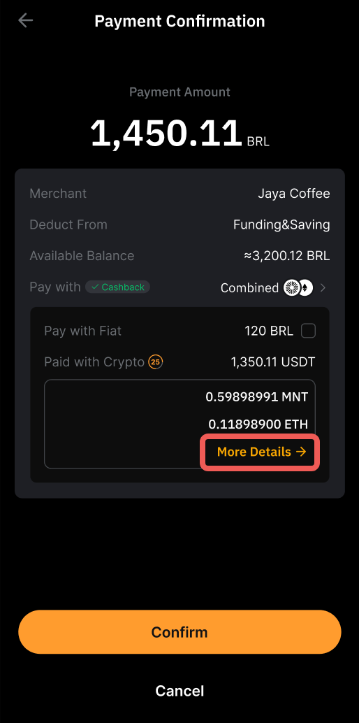 - You can click More Details to view the quoted price of the other usable crypto assets.