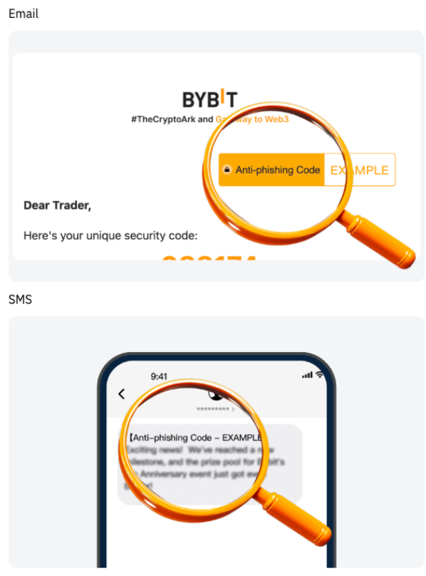 The cryptocurrency sector is expanding swiftly, drawing not only enthusiasts, traders, and investors but also scammers and hackers eager to exploit this growth. The Anti-phishing Code is an important security measure designed to safeguard users from phishing attacks. An Anti-phishing Code is a unique code that only you know. Once you set it up, this code will be displayed in all official emails and SMS messages from Bybit. It serves as your personal authentication mark to help distinguish genuine messages from phishing attempts.