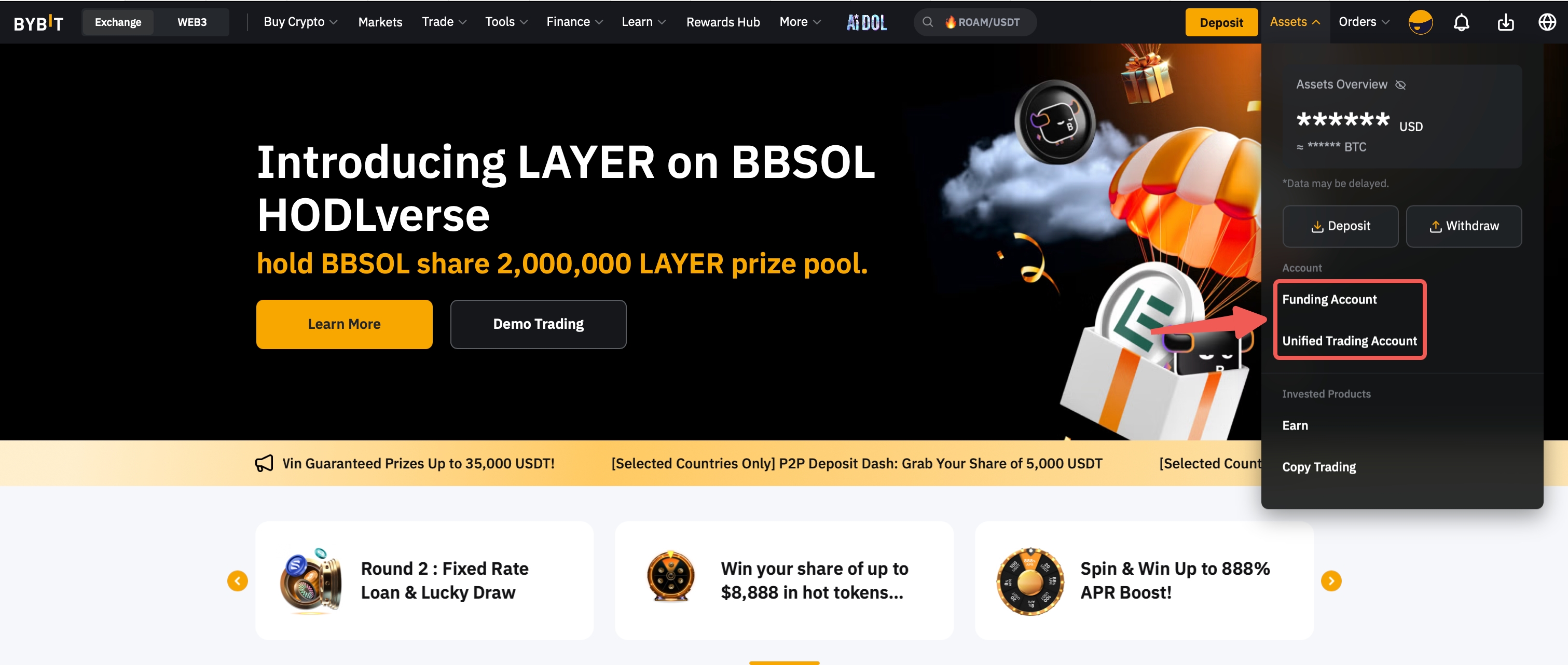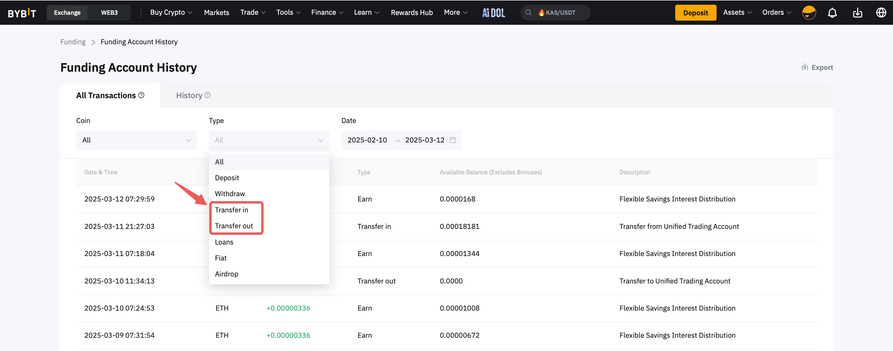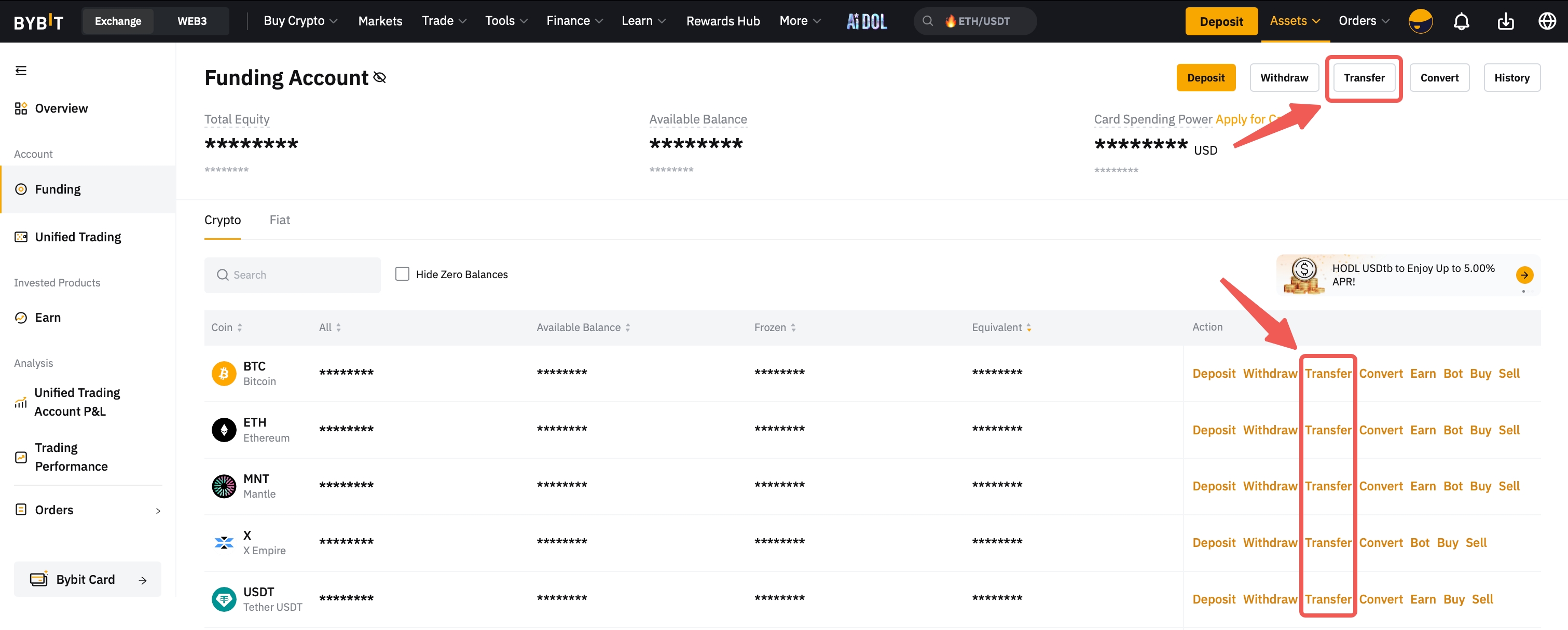 以下详细指南可帮助您在 Bybit 资金账户和统一交易账户之间划转资产。