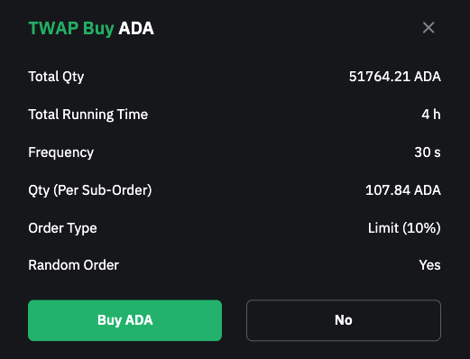 第 2 步:输入您的参数以创建您的 TWAP 订单。